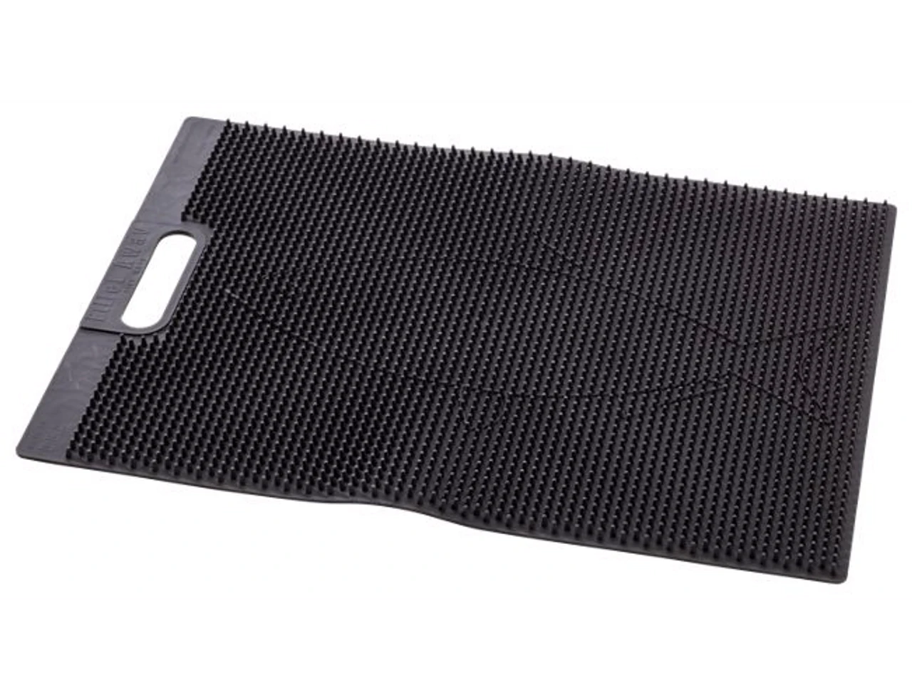 Fillet Away Fish Mats are made of a high quality TPV material that does not absorb oil. The rows of pegs on this fish cutting mat hold the fish securely in place while it is being cleaned. The result is a fish fillet mat that works to your advantage and is also easy to use and clean. No more stinky slippery fillet mats.Â
